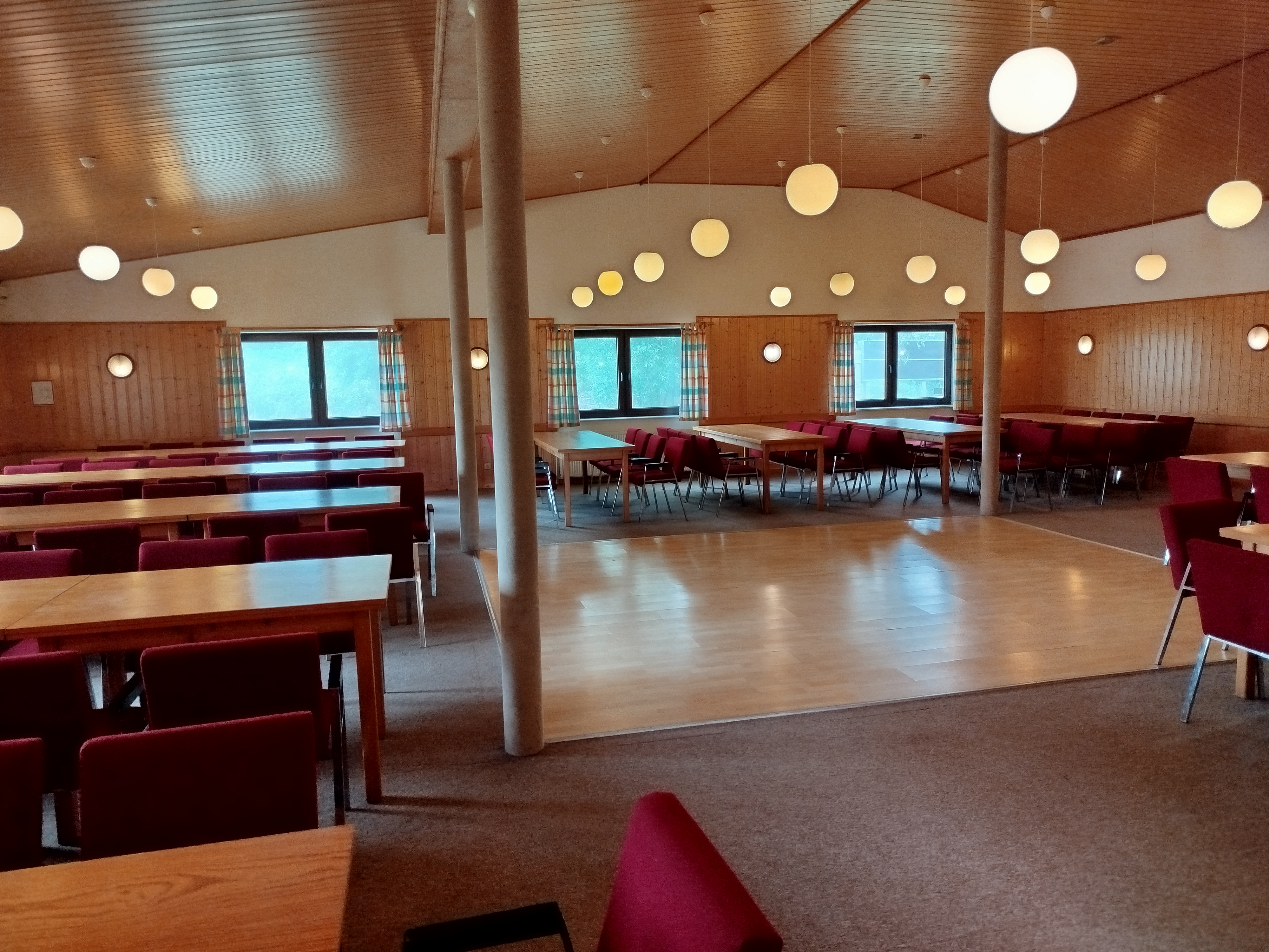 Der Saalbetrieb ist konzipiert für Veranstaltungen bis ca. 120 Personen, eine Küche und weitere Nebenräume gehören dazu.